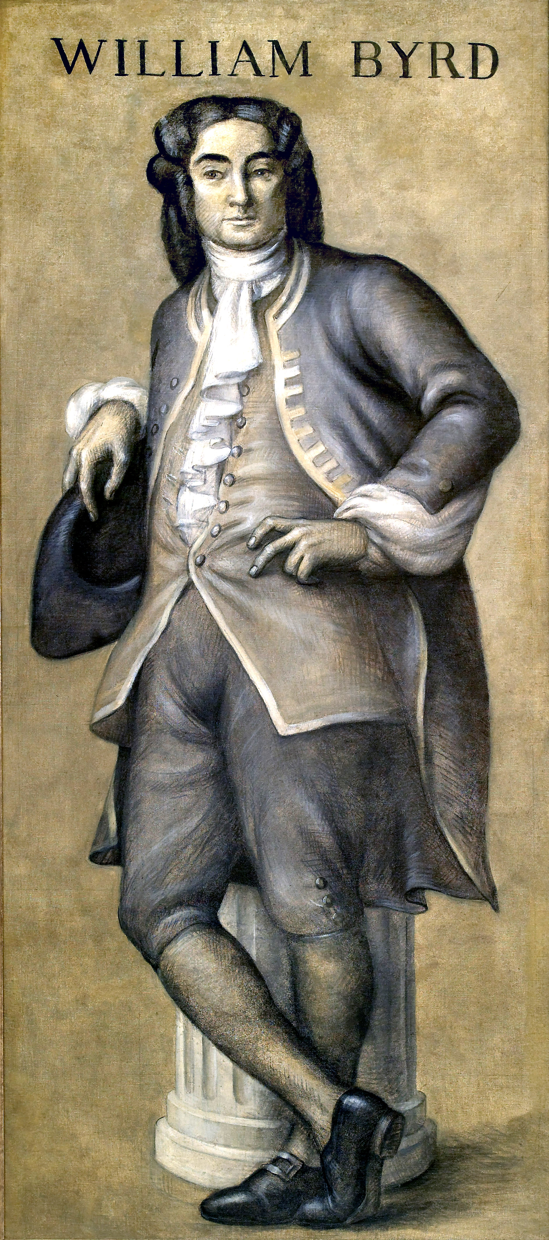 Pocahontas Rescuing John Smith 1939 The saving of the life of John Smith by the indian maid, Pocahontas, was a highly dramatic incident in the early history of Richmond. This romantic and historical event is portrayed with the vigor and color characteristic of Cadmus's work. The two side panels contain portraits of Sir Walter Raleigh, the explorer, and William Byrd, founder of Richmond. They are executed en grisaille, a monochromatic style of painting in shades ofgray, used particularly to depict a subject in relief. Paul Cadmus was born in New York City on December 17, 1904. He studied at the National Academy of Design under William Auerbach-Levy, Charles Hawthorne, and others. He also studied for two seasons at the Art Students League under Joseph Pennell and Charles Locke. After working in the art department of an advertising agency, he went to Mallorca, Italy where he studied painting for two years. His works are in the permanent collections of the Whitney Museum of American Art, in New York City, the Art Institute of Chicago, the Baltimore Museum of Art, and other prominent institutions. |